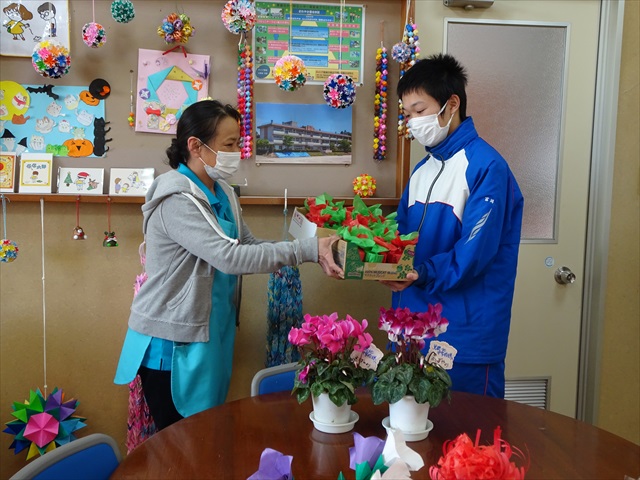 地域交流の一環として小中学校に、利用者の皆さま方と手作りした〝芳香剤〟をお届けしたり、新入生入学の時期には〝お祝いボード〟を贈らせていただきました。