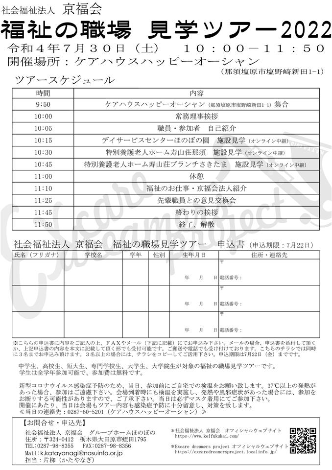令和4年7月30日(土)「福祉の職場見学ツアー」開催のお知らせ~Excare dreamers project~