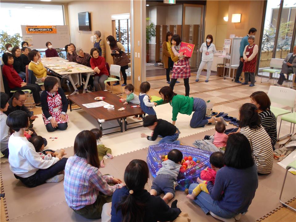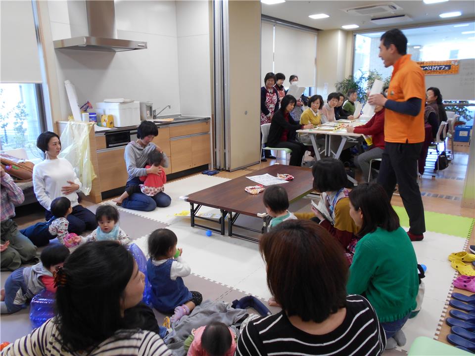 治療院の院長先生による経路を意識した体操や、紙芝居の上演などが行われ、カフェタイムではママや子供たち・じーじ・ばーばとの交流の場となりました。