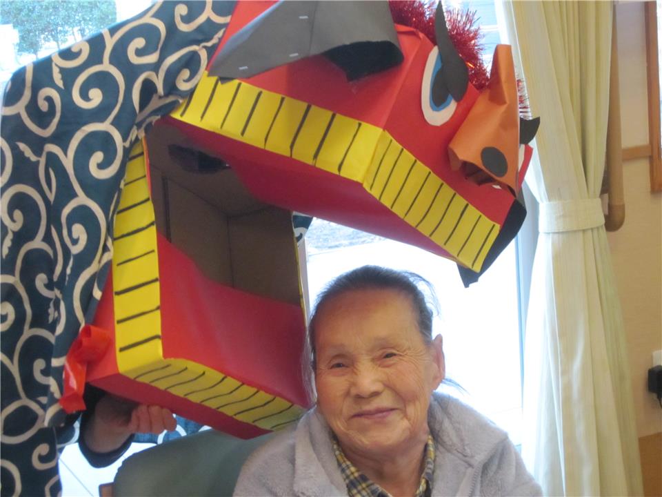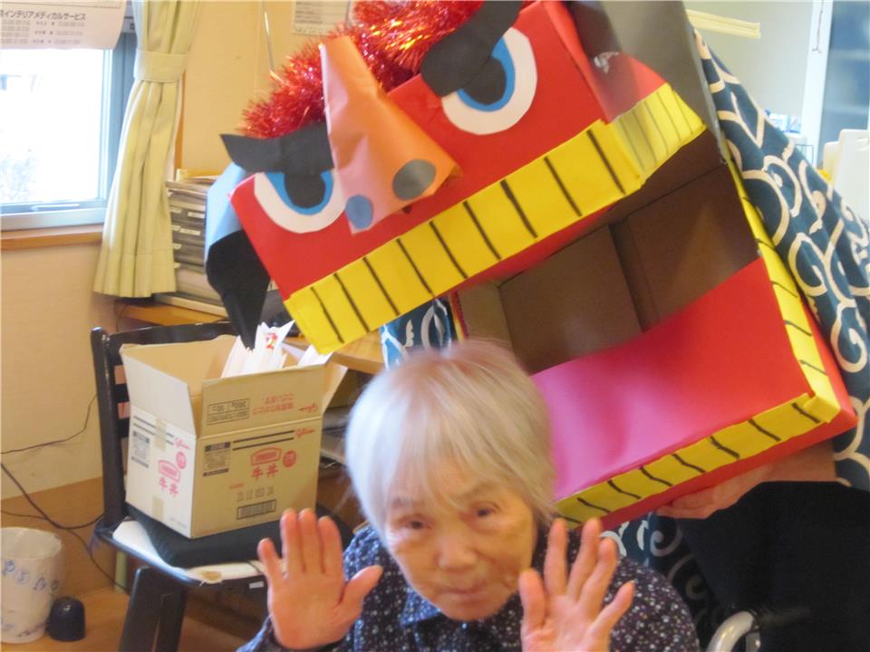 この獅子舞も職員の手作りです。とっても良く出来ているので、しばらく飾らせてもらおうと思います。