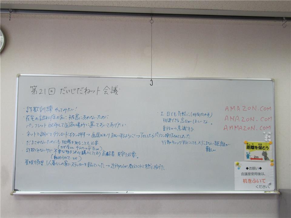 また、「空き巣」ならぬ『忍び込み』と言って住人がいる時にこっそりと入ってくる窃盗の被害もあるそうです。これから暑くなる季節、戸締りなど注意をしてほしいとのお話がありました。被害に遭わないよう、できる対策を行っていきましょう。 今後もだいじだねット会議では、地域の皆さんにとって身近な内容を話し合っていきたいと思います。