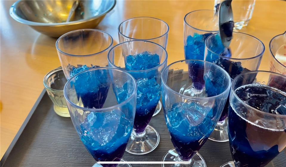見た目が爽やかできれいなゼリーに皆さん大喜び!!さらには色が変わる様子を見て頂くと、大変驚かれていました(^_-)-☆