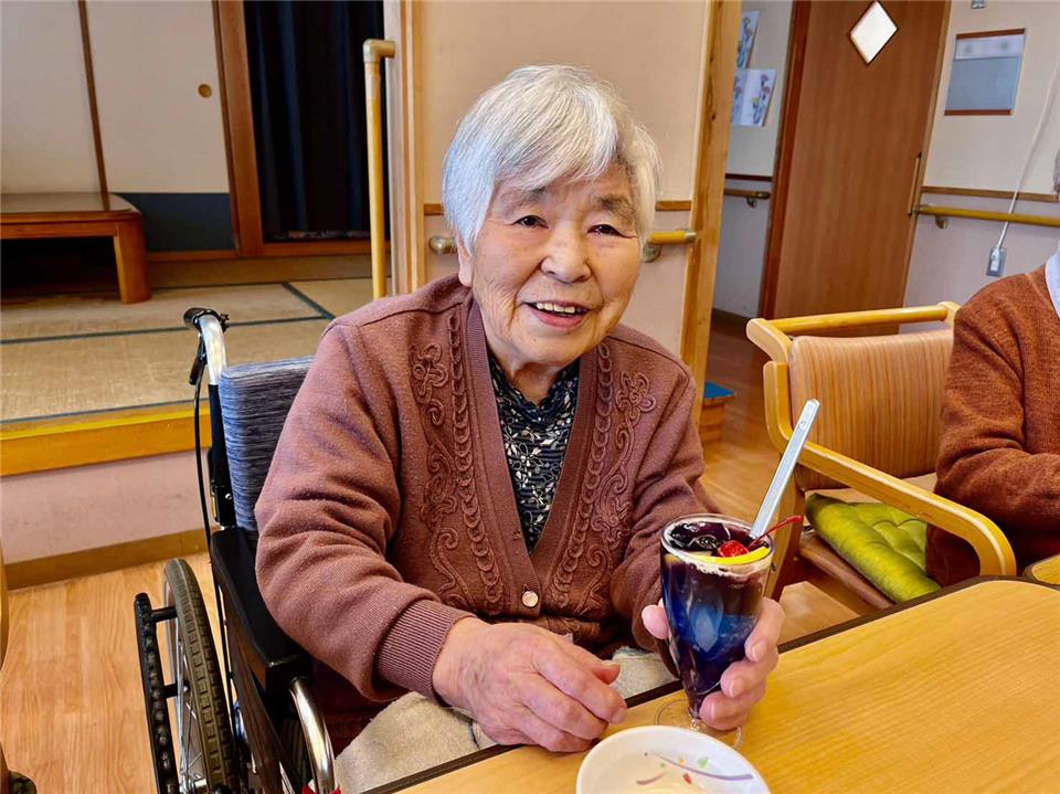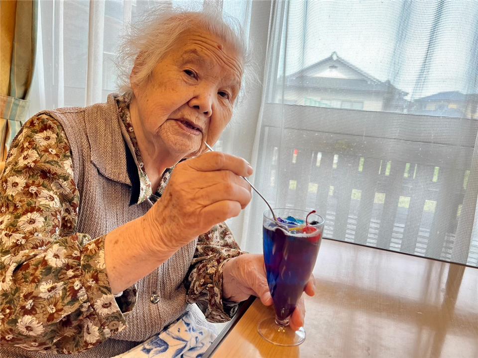 6月ですので、紫陽花をイメージした3色のゼリーを作り、レモンスライスとレモン汁で色が変わる様子を入居者様には見て頂き、色の変化も楽しんで頂きました(*^-^*)