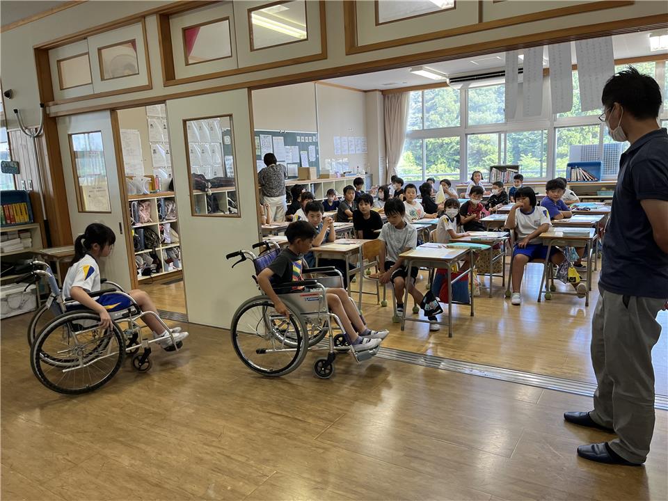 今回は高林小学校・埼玉小学校の4年生を対象に少子高齢化や認知症のクイズ、車椅子の体験などを行いました。