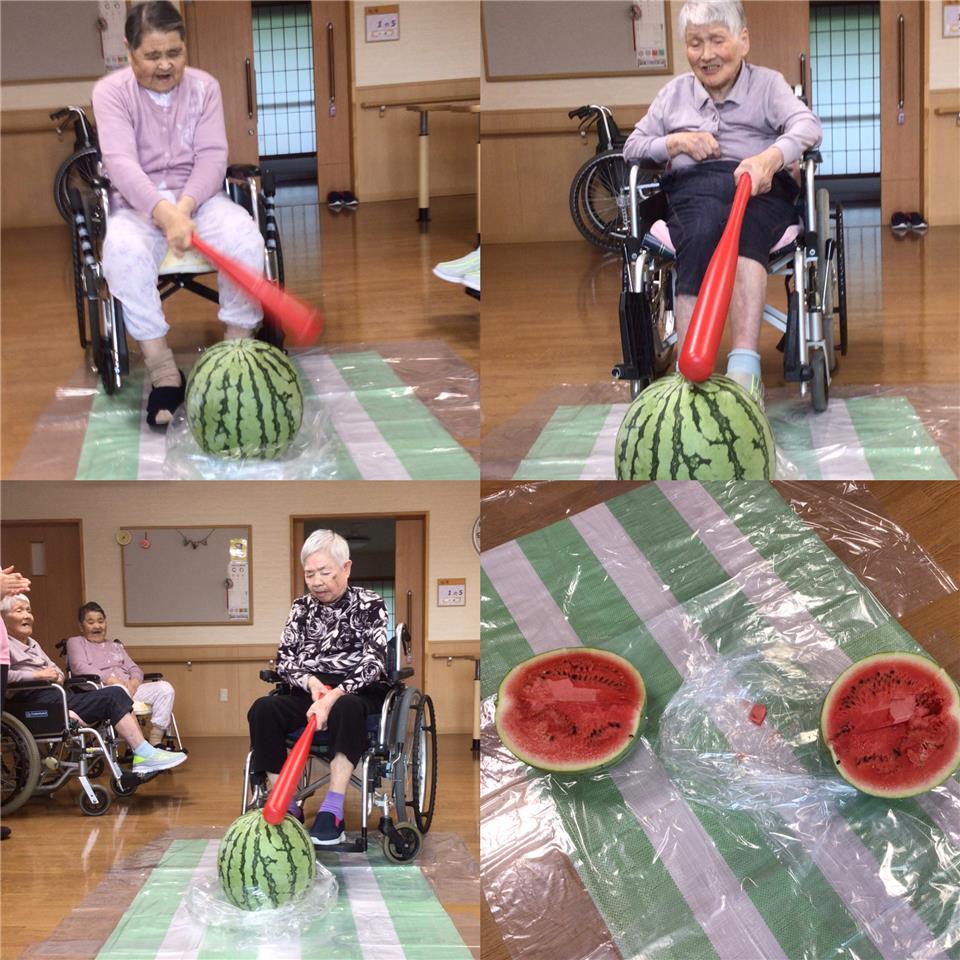 力を合わせてこんなに綺麗にスイカを割る事が出来ました。