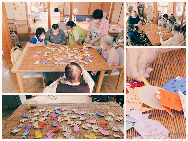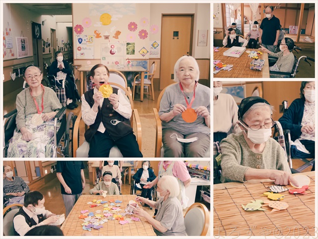 センター長のご挨拶に続き、本日のイベントは〝金魚すくい〟チームに分かれ皆さんスタートの合図とともに一心不乱にすくっておられます(/・ω・)/(゜))<<