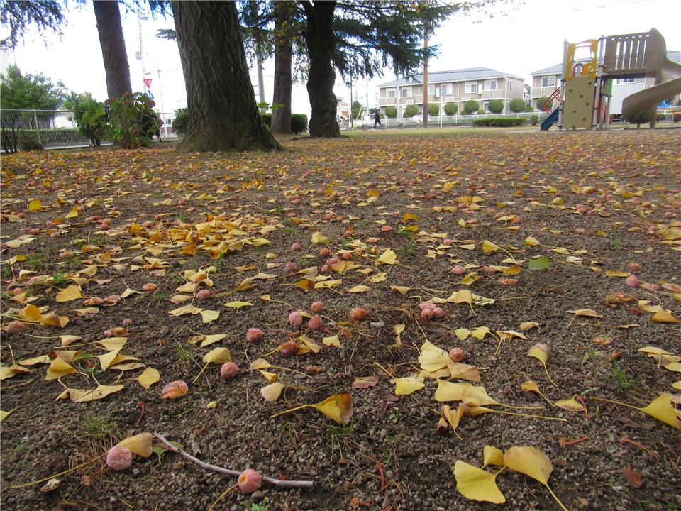 イチョウの木の周りを歩くと「ぎんなん」をたくさん発見!