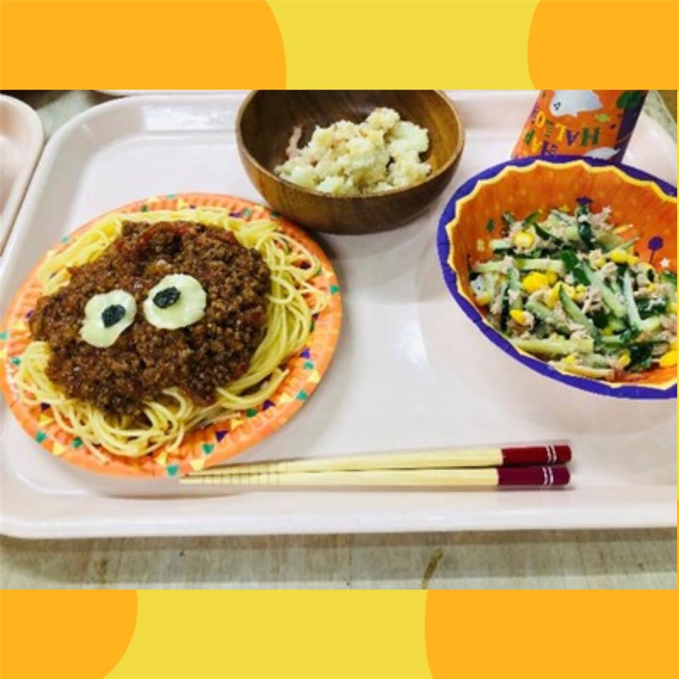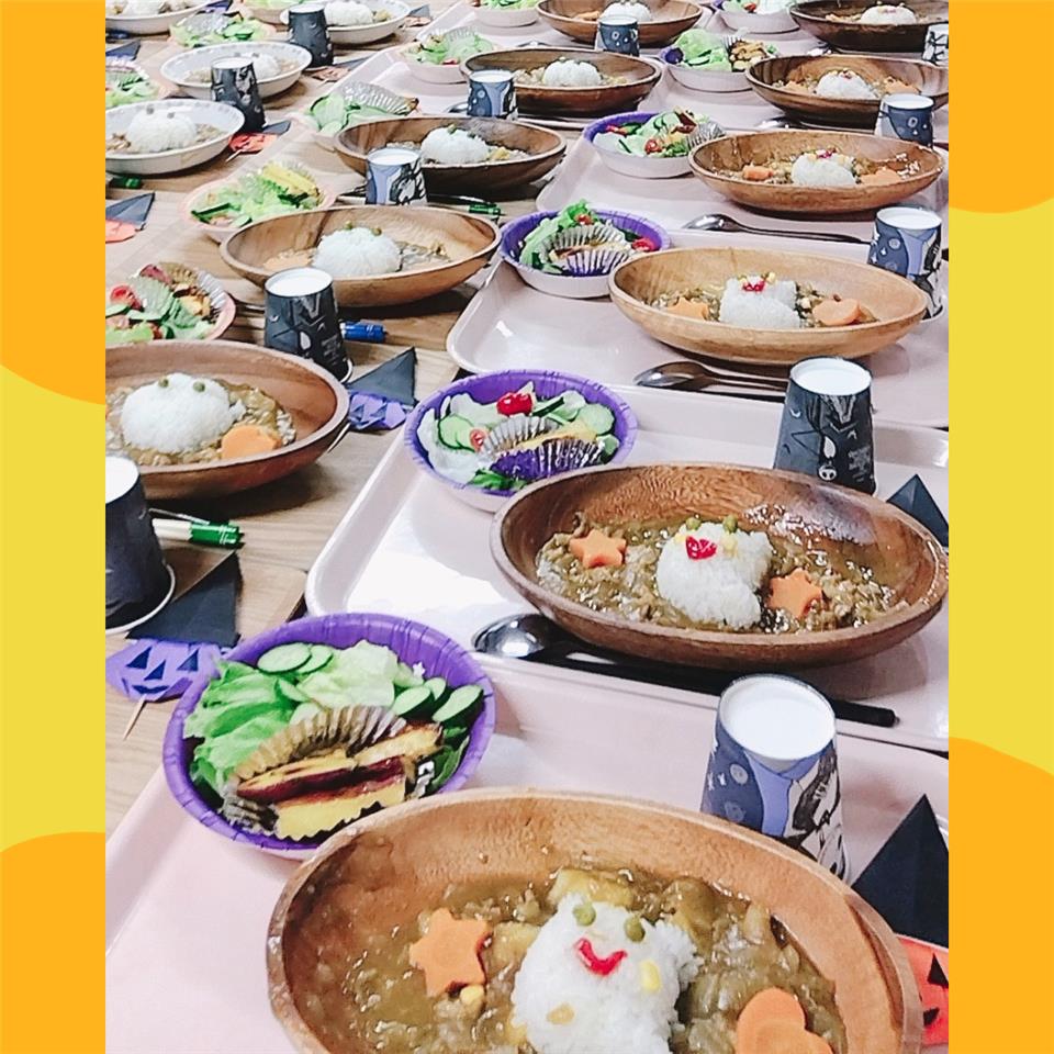 10月はハロウィンメニューにほくほくお芋のおやつが添えられ、