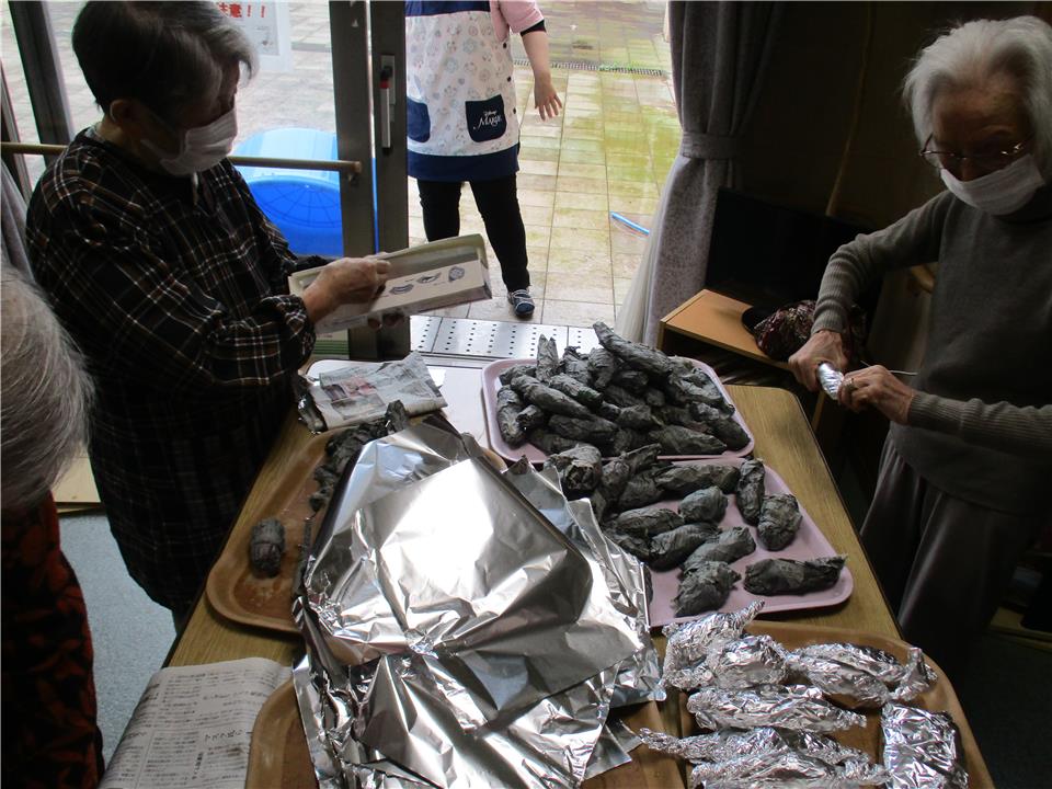 焼く前の下準備から皆さん手伝って頂きました(*^-^*)「今回は甘い芋かな~?』「焼き上がり楽しみだ」など食べる前から楽しみにしていました(*^^)