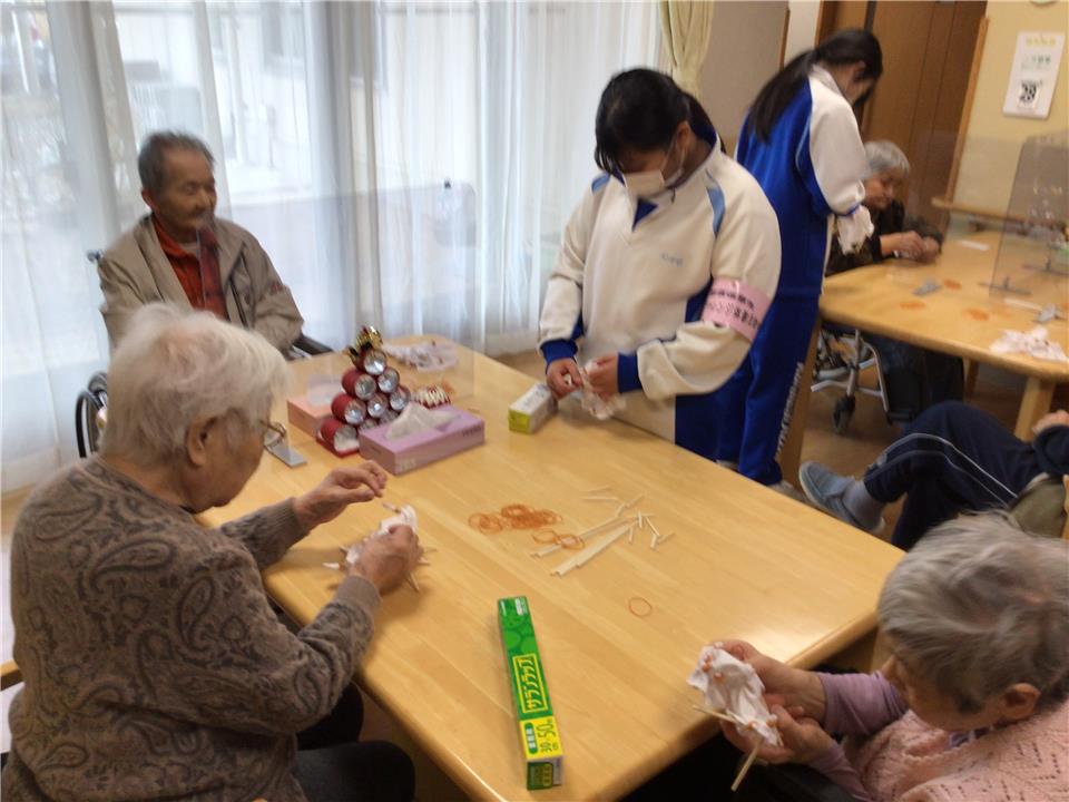 入居者様も中学生の姿を見て笑顔が見られていました。入居者様のお話をやさしい笑顔で聞いている姿に、こちらも心が和みました。3日間ありがとうございました。