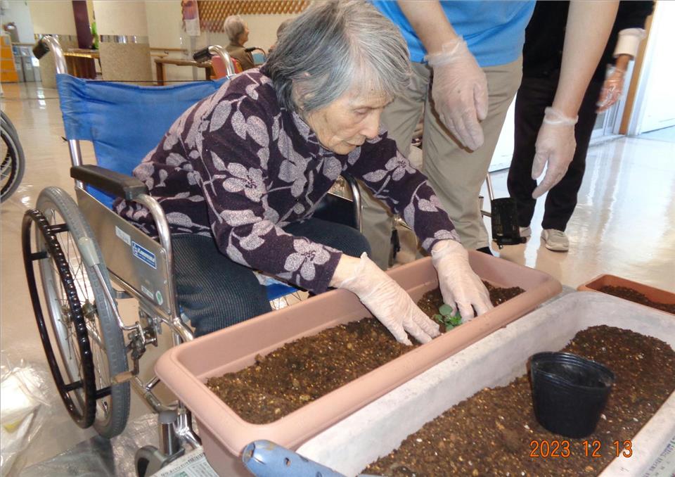 皆様と植えたビオラの苗が成長し花が咲くのが楽しみです(≧▽≦)先日は12月とは思えない異例の暑さとなりました。寒暖差で体調を崩しやすい時期です。皆様体調には気を付けてお過ごしください(^-^)