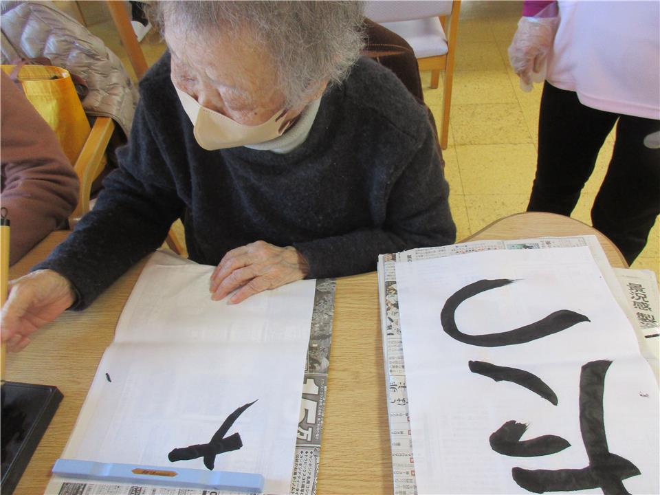 年の初めに書き初め🖌をしました。皆さん、気持ちを新たに、思い思いに筆を下ろしていらっしゃいました。