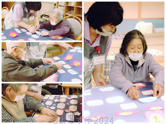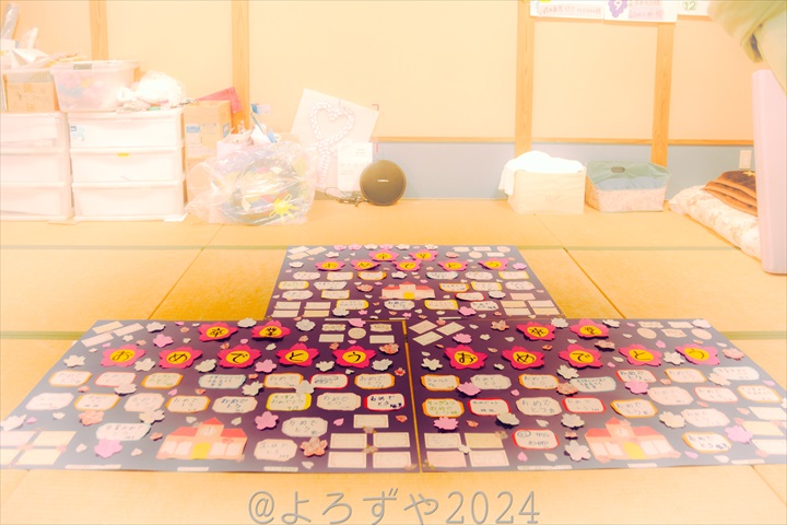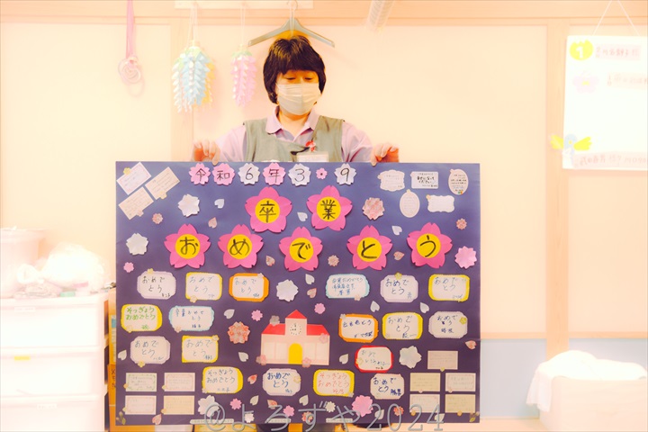 “おめでとう”の想いを込めた手書きのカードを、1枚1枚貼っていきます。
