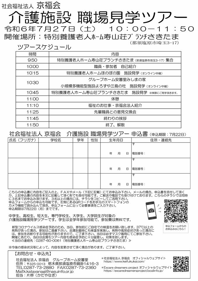 令和6年7月27日(土)「介護施設 職場見学ツアー」開催のお知らせ~Excare dreamers project~