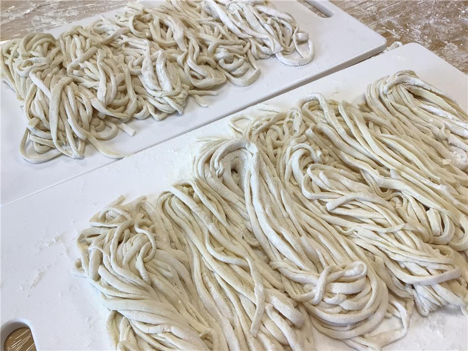 伸ばした生地をカットしたら、手打ちうどんの完成です。