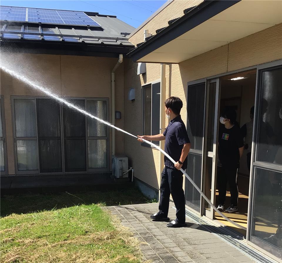 火災が起きた時を想定し、通報訓練や放水栓を使った消火訓練などを行いました。