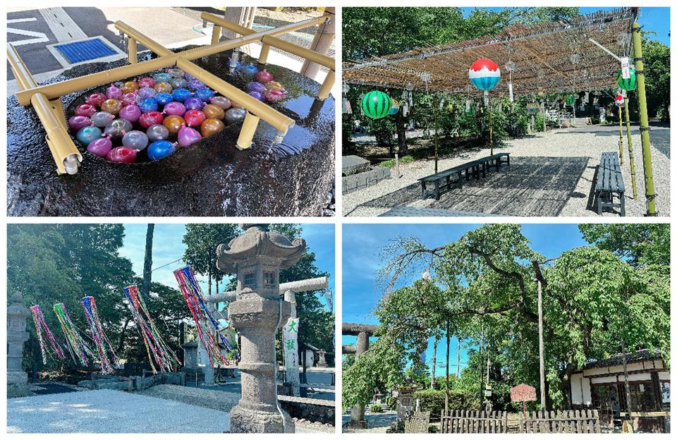 水に浮かぶ水風船、優しい音色の風鈴、風になびく七夕、大きな樹木