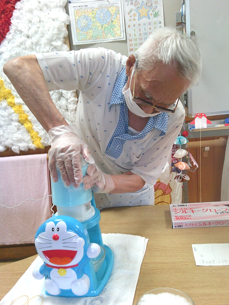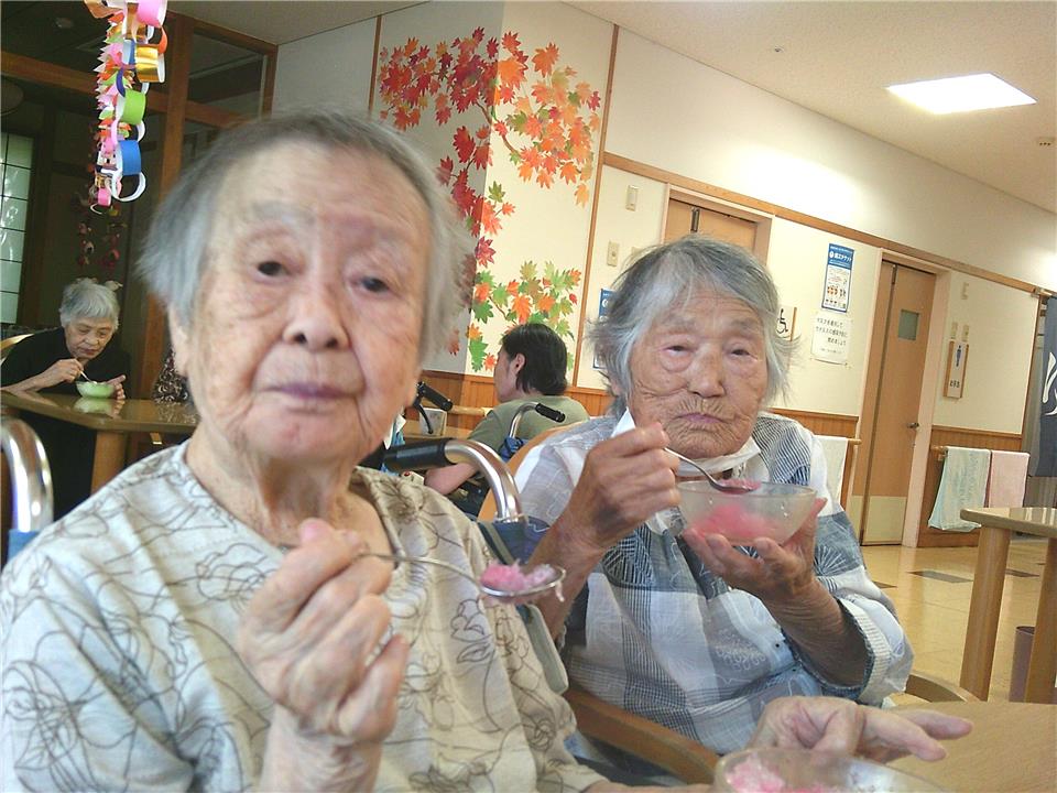 水分補給も出来て、体も涼しくなり、皆さんのこの笑顔(*^^)v楽しいひと時を過ごせました。さて、デイサービスセンター安暮里の菜園も収穫時期を迎えました。次回は、収穫したお野菜で、おやつ作りです。乞うご期待(*^^)v