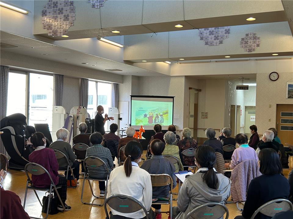 本日は体操後の余暇活動の時間を活用し、認知症サポーターのキャラバン・メイトである山田と髙瀨が講師として養成講座を実施させていただきました。