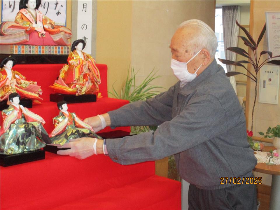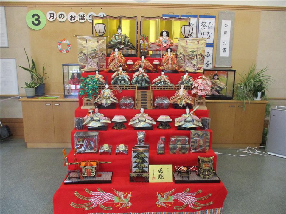 五人囃子は成人前の少年たちで「アピール次第で宮中で重宝されるかも」という想いで、気合いを入れて演奏をしているそうですよ。などと職員からの解説を聞きながら、楽しく飾ることができました♪