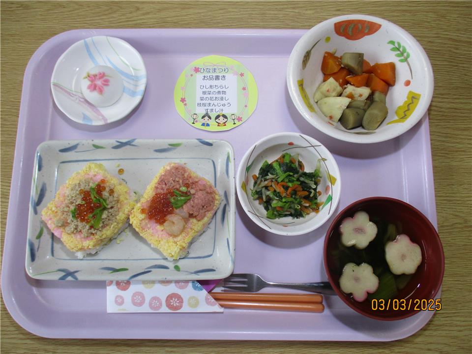 ~おまけ~ひな祭り当日の昼食は《ひし形ちらし寿司》こちらも「可愛くて、おいしい♡」と大好評でした。