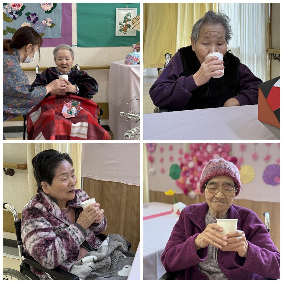 「甘酒、どうぞ」 「美味しい、ほっとするね」