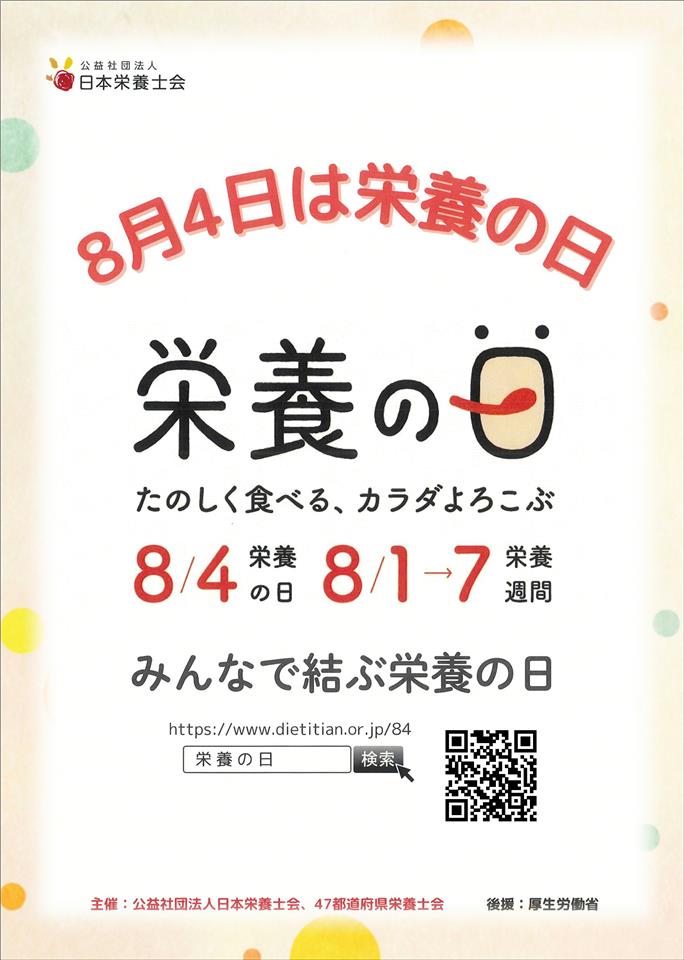8月4日は「栄養の日」!2016年に制定した「栄養の日」(8月4日)、「栄養の日・栄養週間」(8月1日~7日)は今年で9年目を迎えました。