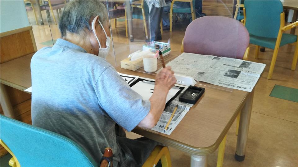 次に紹介するのは、「書道サークル」です。今回は、「盆踊り」や「ひまわり」などの夏らしいお題でした皆さん、筆が進んでいますね~真剣な眼差しで皆さん集中モードです!