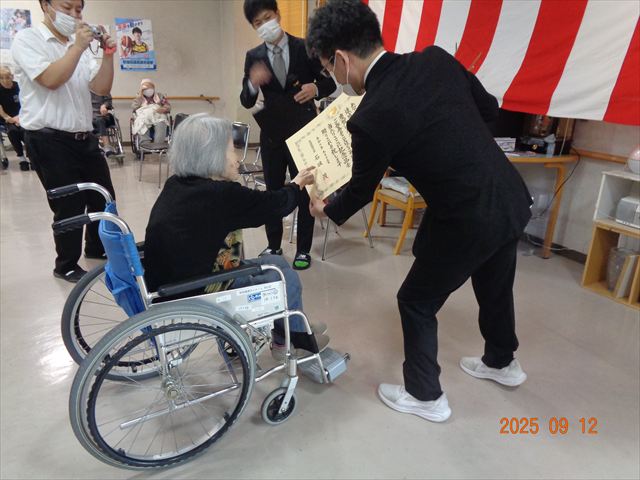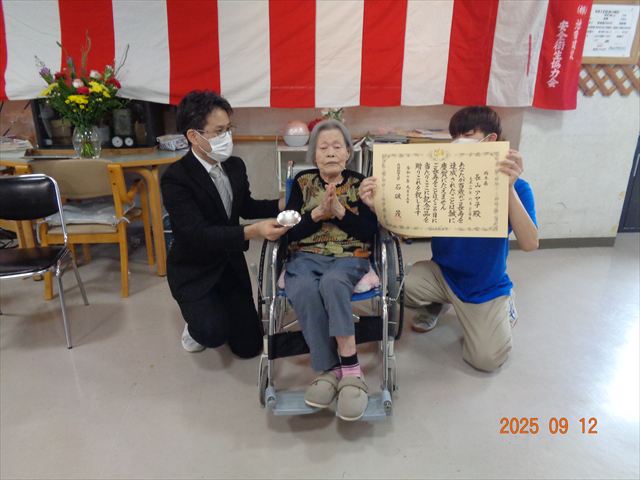 • ご長寿の表彰、おめでとうございます。内閣総理大臣からも表彰状と銀盃が届きました。