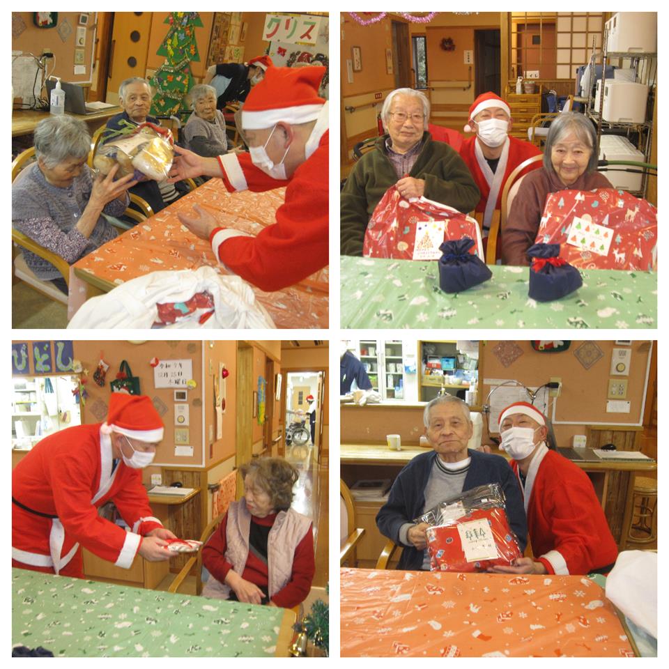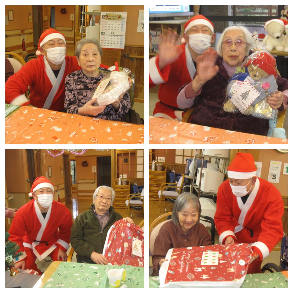 美味しくいただいたあとは、サンタさんの登場です!!職員が選んだ入居者様ひとりひとりの好みや生活に合わせたプレゼントを、サンタさんからお渡ししていただきました🎄