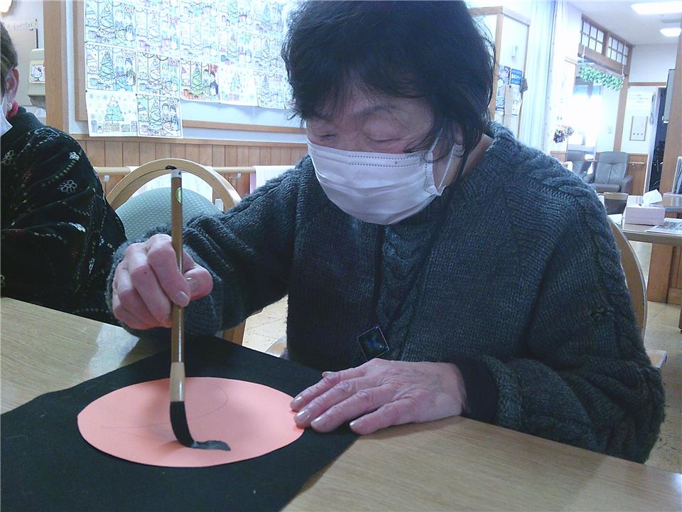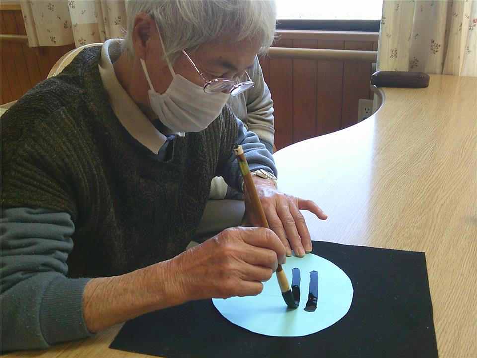 ご利用者様と今年は『あけましておめでとう』と筆と墨で書いていただきました!