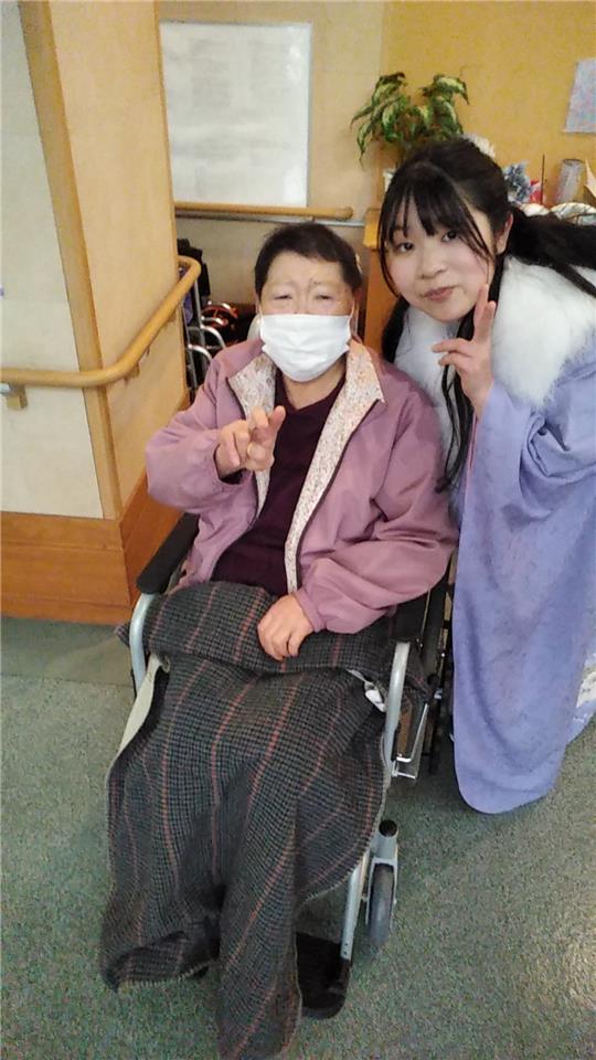 職員さんの振袖姿を見た入居者様は「綺麗だね~」「私にもこんな時代があったんだろうね」などと仰っていました。最後に一句【振袖や 昔を想い 涙ぐむ】次回もお楽しみに~♪※画像の掲載は職員本人の同意を得ています。