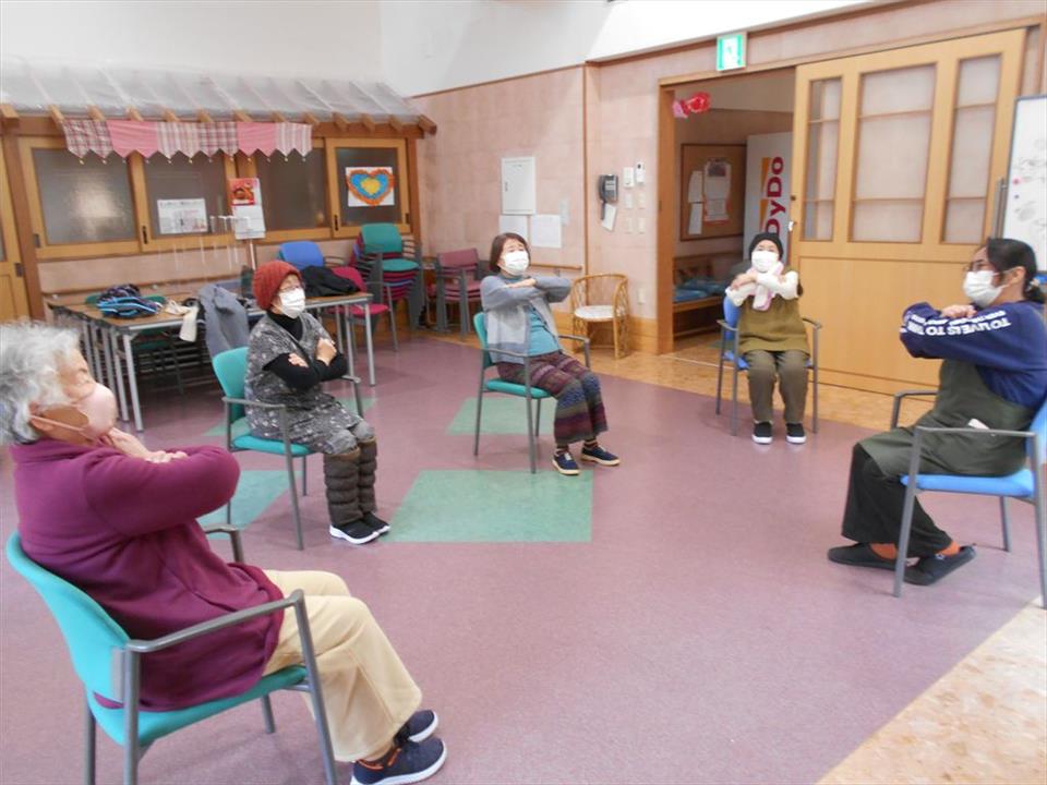 • 昨年「体操を再開してほしい!!」とう嬉しいお声があり、再開することとなりました。毎週金曜日の14:00から体操しています。少人数でゆったりした時間を過ごしています。「毎週楽しみなの(^^♪」と話していただいてます。