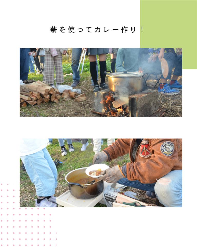 自然に囲まれた畑という非日常の空間で、「つながり」が生まれた2日間。お互いのことは深く知らないけれど、薪割を通して関係性が築かれ、みんなが温かで刺激的な時間を過ごしました。