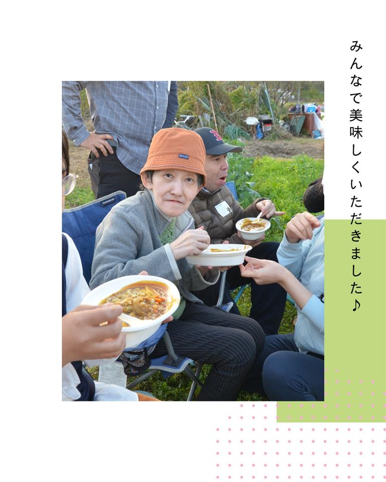 お手伝いする子、見守る子、利用者様とお話しする子など、自然と助け合い、関わる姿があちこちで見られ、心がほっこり。薪割りから調理まで協力しながら作ったカレーは、みんなで食べると一段と美味しく感じました✨