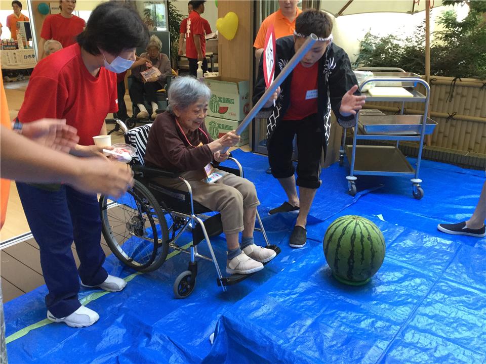 スイカ割りをしたり、おみくじをひいたり、焼きそばやじゃがバター、かき氷、ソフトクリームなどをご家族様と一緒に召し上がっていただき、夏祭りを楽しんでいただきました(^▽^)/