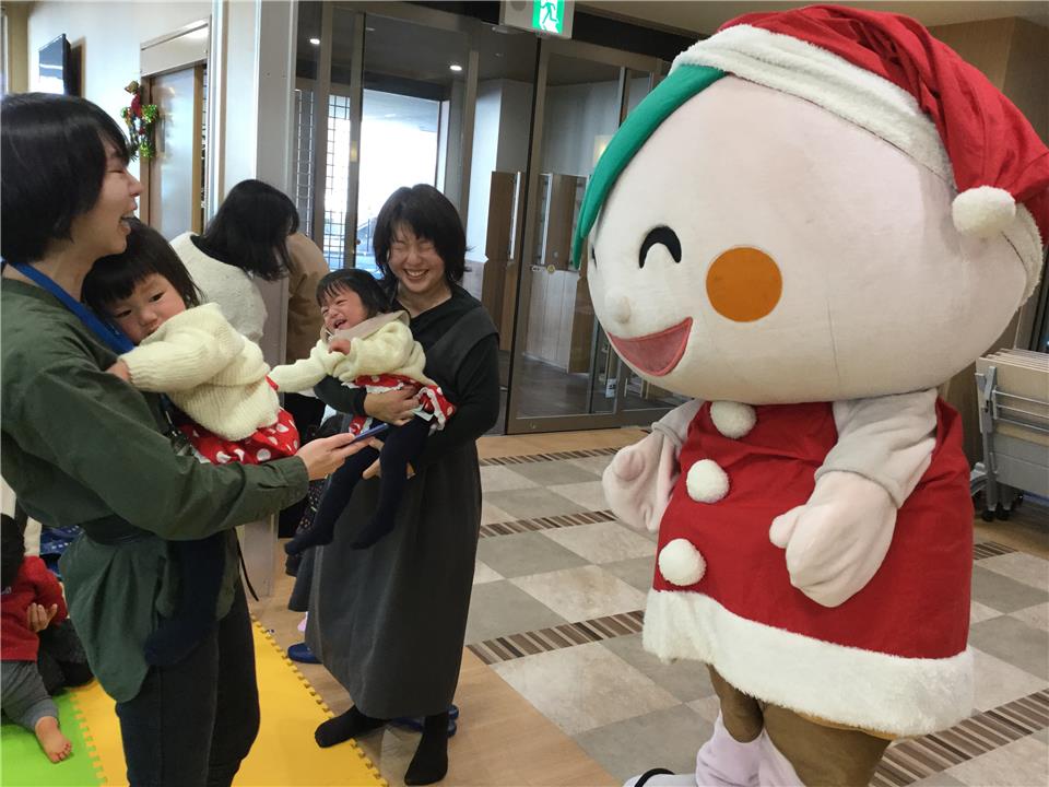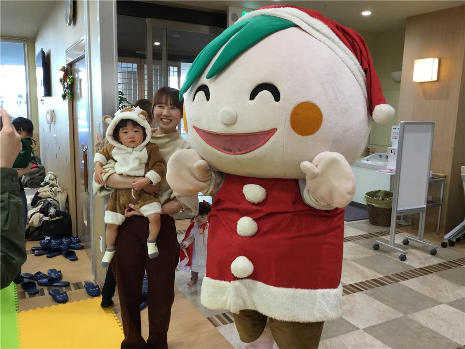川口市社会福祉協議会のキャラクター”社助”が登場、クリスマスプレゼントを配ってくれました。
