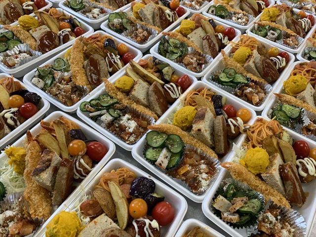 「こどもおべんとう」とは、コロナ禍で市内の子ども食堂が休止や縮小せざるを得ない状況となり、それに代わるものとして始まった活動です。共英小学校の昇降口で子どもたちに無償でお弁当を配布しています。