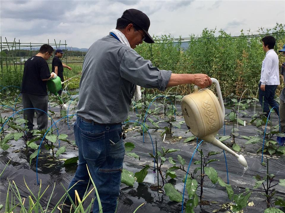 その後、利用者様が茄子に水やりをされているのを見学しました。
